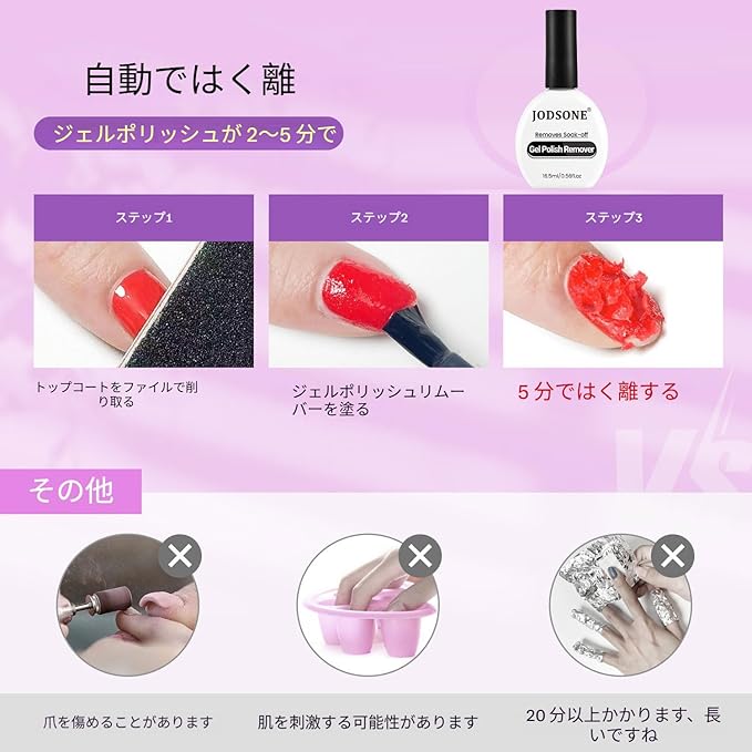 JODSONE ジェルネイル リムーバー 除光液 16.5ml マジック ジェルネイルオフ 浸け置き・ラッピング不要 3~5分で簡単・迅速 ピールオフジェル セルフネイル
