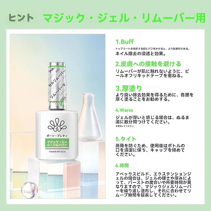 BORN PRETTY ジェルネイル リムーバー 除光液 15ml マジック ジェルネイル オフ ネイルリムーバー 簡単・迅速 ピールオフジェル セルフネイル ジェルネイルオフ gel nail remover