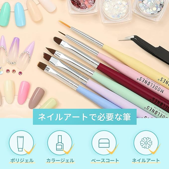 Modelones ネイルブラシセット ネイル筆セット ジェルネイル用筆セット ふでセット ビルダーグルーブラシ ネイルアートラインブラシ ネイルドットペンなどのネイルアートデザインペンペイントツール