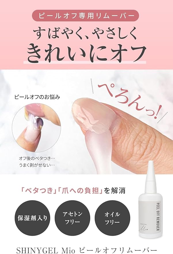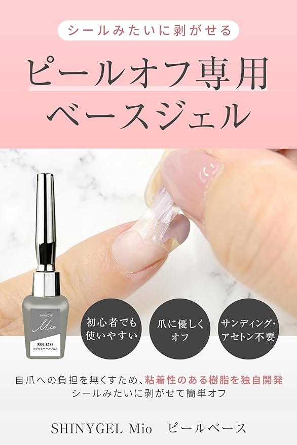 SHINYGEL Mio シャイニージェル ミオ ピールベース<剥がせるベースジェル> 日本製 ジェルネイル 爪にやさしい[UV/LED対応]ピールオフベース ピールオフタイプ リムーバー不要 はがせるジェルネイル 簡単オフ (ピールベース単品, オプションなし)