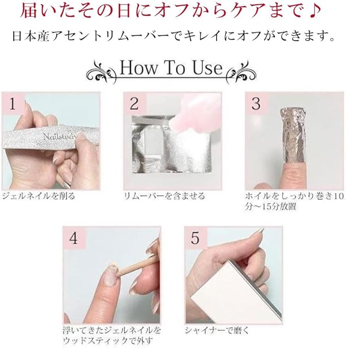 自宅で簡単にできる、ネイルオフ&ネイルケアです!初心者さんでもきれいにオフできる♪サロンに行かなくてもおうちでできちゃう★必要なアイテムが一気に揃う充実のセット内容♪