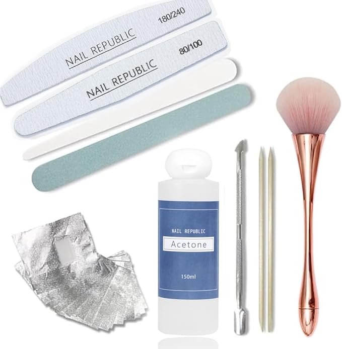 【セット内容】・シュシュアセトン(150ml)・リムーバーラップ(20枚)・メタルプッシャ―・ダイヤ(ムーン)ファイル80/100・ ムーン型(またはダイヤ型)180/240・2WAYシャイナ―・エメリーボードホワイトまたはブラック・ウッドスティック(2本)・メタリック スレンダー ダストブラシ1本