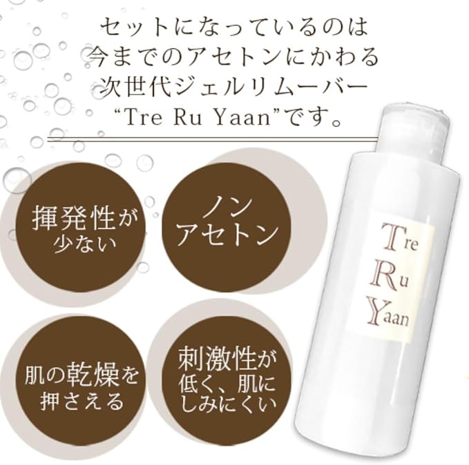 【セット内容】 1・トレルヤーン 150ml 2・ダイヤ型 ファイル 80/100 3・リムーバーラップ 20枚 4・ウッドスティック 2本 5・ブロック型シャイナー 6・選べる12種類キューティクルオイル