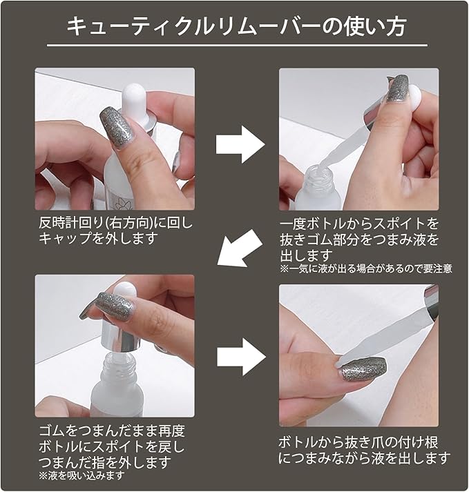 【爪 手入れ】このキューティクル・リムーバー甘皮処理 液は、ネイルオイルと甘皮処理 リムーバーを組み合わせて使用することで、爪と甘皮のネイル ケアを効果的に行えます。ネイル道具としても重宝し、ネイルケア、素爪ケアの必需品です。