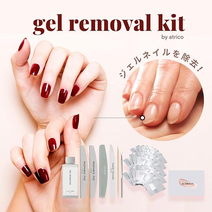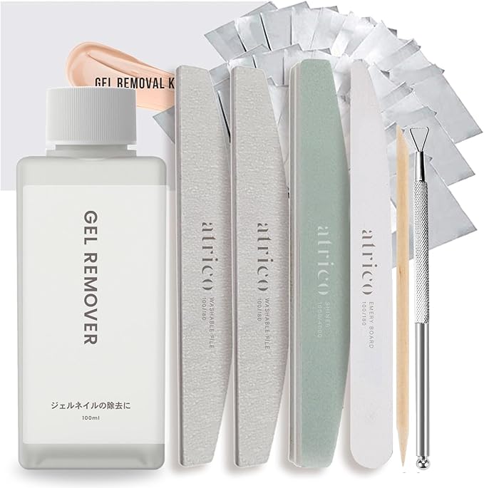 atrico ジェルネイル オフ キット(ジェルオフ アセトン リムーバー 日本製 100ml付 ジェル除去 解説書付 セット)ネイルセット