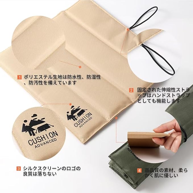 持ち運び座布団 アウトドア クッション 折り畳み座布団 軽量 コンパクト 防水 防湿 持ち運び 熱/冷気遮断 おしゃれ ポータブルクッション 屋外 野球観戦 スタジアム スポーツ観戦 バーベキュー 登山 花見 ピクニックに適した レジャー キャンプ 釣り 運動会 花見 通勤 スタジアムクッション 水洗い可能 (カーキ色)