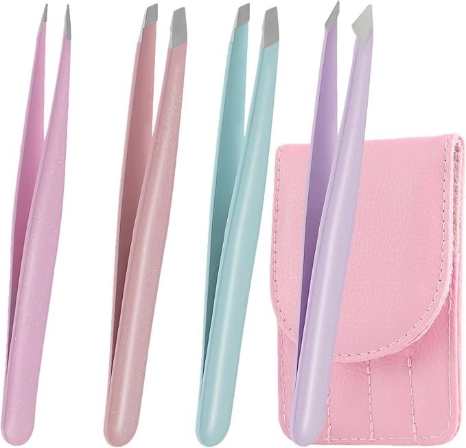 毛抜きピンセット 眉毛/まつ毛/顔の毛/鼻毛/埋没毛処理用 ステンレス製 4本入り