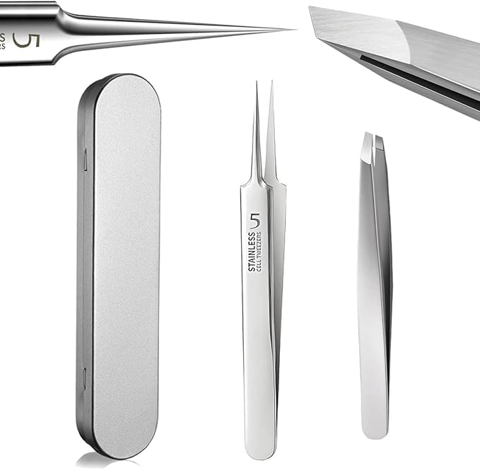 角栓ピンセット 毛抜きピンセット (先斜め) 極細先端幅は0.1mm 精密ピンセット 角栓取り かくせんとり 黒ずみ取り 収納ケース付き 2本セット