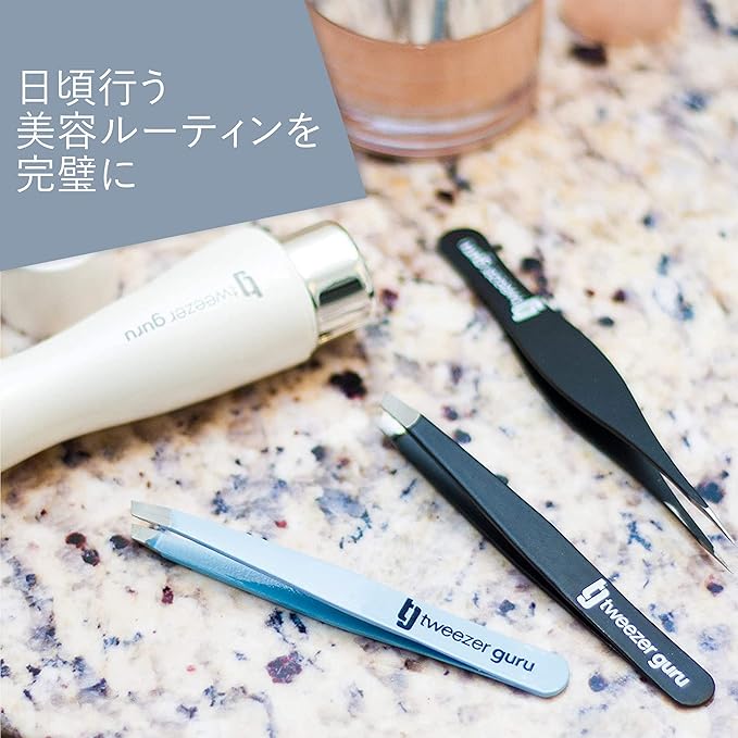 TweezerGuru 毛抜き ピンセット 眉毛抜き 精密 ステンレス 鼻毛 ヒゲ とげぬき 黒ずみ 角栓 角質取り 先斜め 先端極細 2本入り