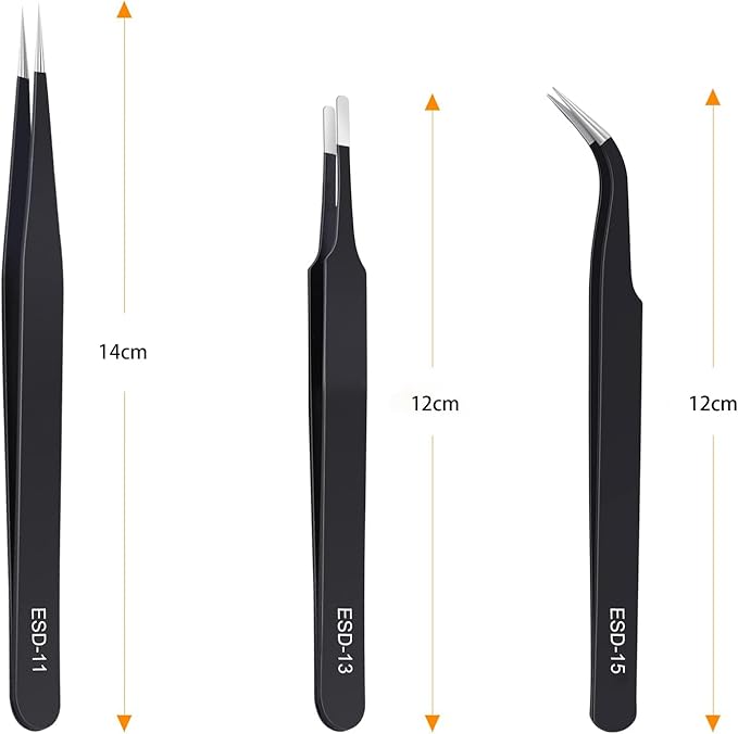 ピンセット[ESD-13]:直型、刃先丸い型、部品への損害を回避できます (120mm/4.7in)。