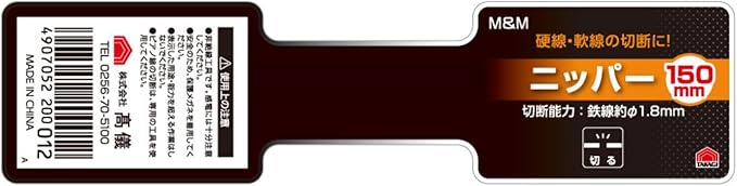 高儀(Takagi) M&M 成形グリップ ニッパー 硬線・軟線の切断に 切る作業に 150mm