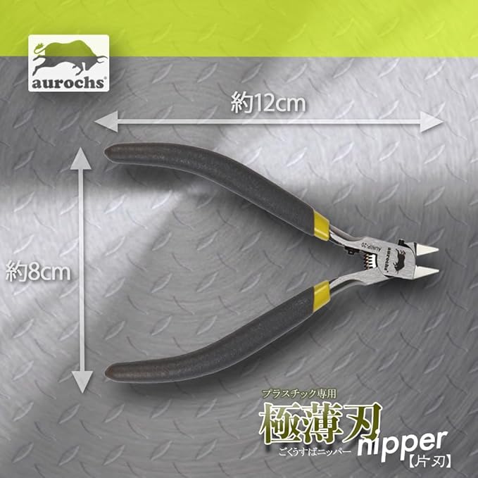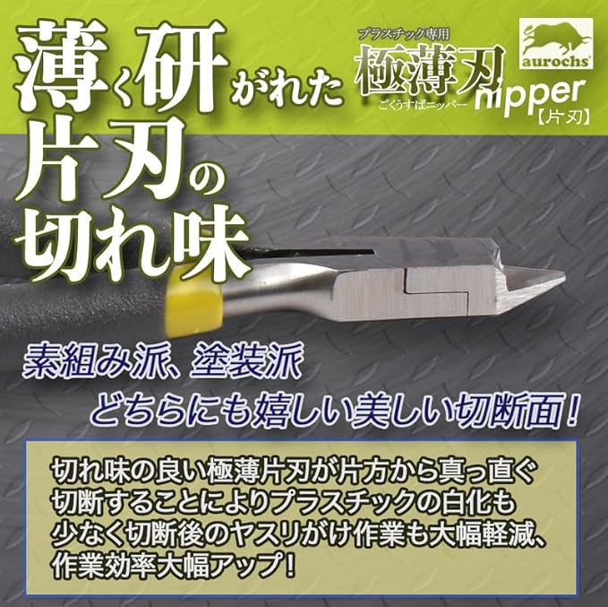 aurochs 極薄刃 ニッパー 片刃 精密 プラスチック専用 工具 プラモデル 模型 ゲートカット (グレー&ライム/右手用)
