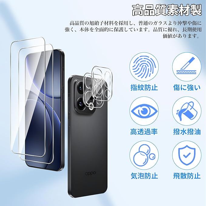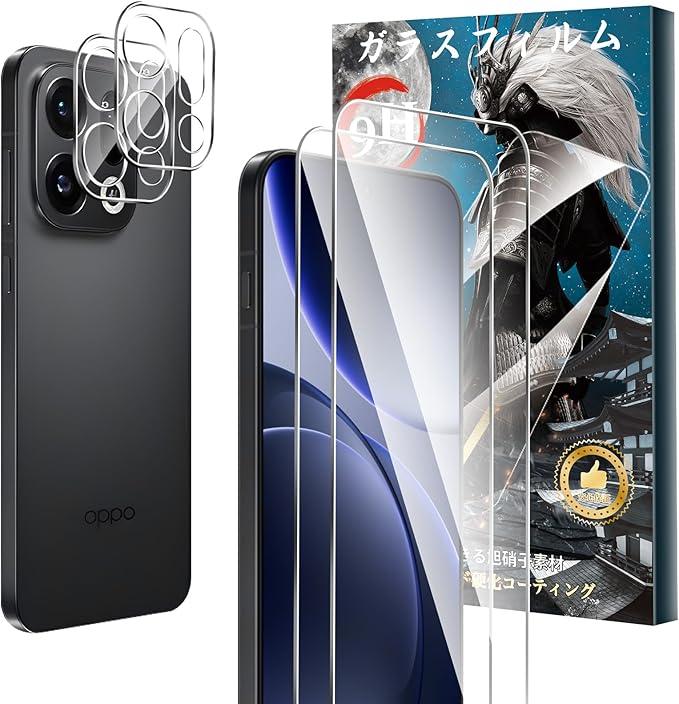 【対応機種】OPPO Find X9 対応。ガラスフィルム*2+透明レンズフィルム*2。誤発注のないよう、ご註文前に型番をご確認くださいますようお願いいたします。