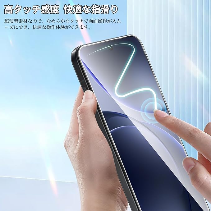【高感度タッチ】極めて薄い厚さで、画面を保護しながらタッチの反応にも影響を与えません。貼っても使い心地は貼っていないものと変わらず、なめらかで快適な体験ができ、ゲームをしても心配ありません。