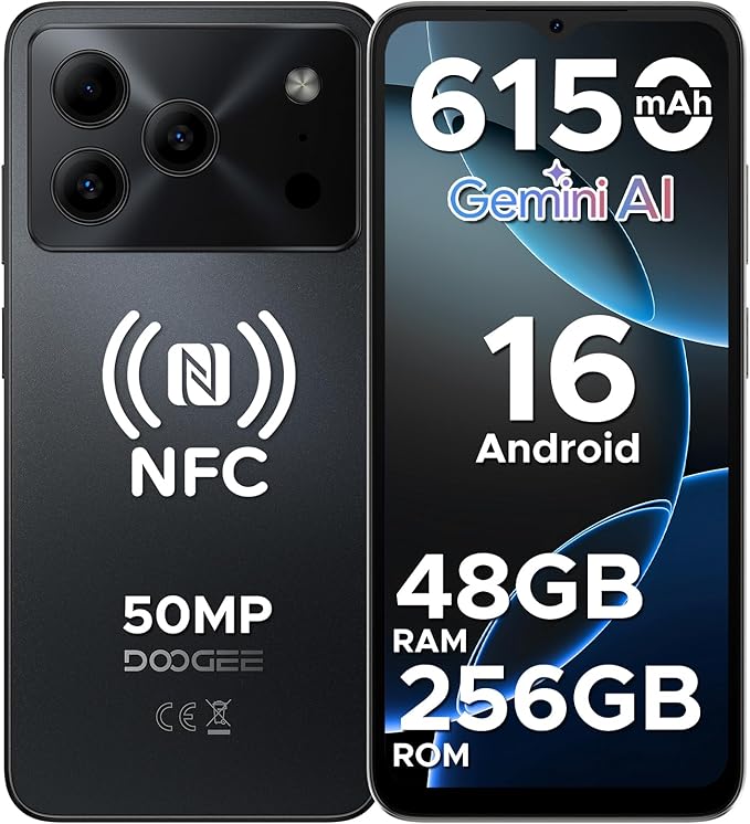 【最新 Android 16 スマホ】DOOGEE Note56 plus Android16 SIMフリー スマホ 6.56インチ 90Hz 5000万画素スマートフォン 8コアCPU T7225 6150mAh大容量バッテリー アンドロイド16 スマホ本体 48GB+256GB+2TB拡張 NFC/指紋認証/顔認証/GPS/OTG/4GデュアルSIM 携帯電話 スマホケース付き