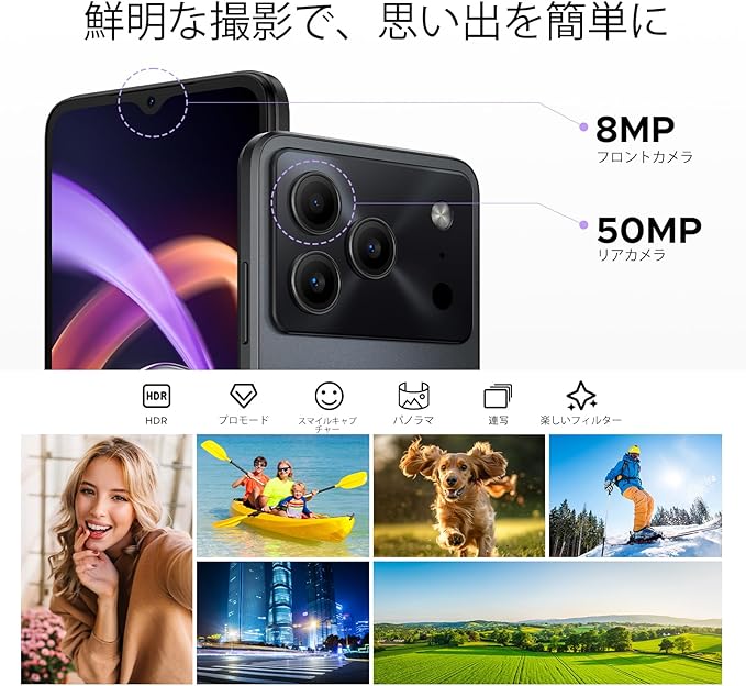 【48GB RAM + 256GB ROM 大容量ストレージ + 5000万画素高精細カメラ】48GB RAM(6GB実装 + 42GB仮想メモリ)+ 256GB ROMを内蔵し、さらに最大2TBのTFカード拡張にも対応。アプリ、動画、写真、ゲーム、音楽、ファイルなどをたっぷり保存でき、容量不足の心配はありません。また、高性能 5000万画素AIカメラ を搭載し、鮮明で自然な写真を撮影可能。HDR、プロモード、夜景、美顔など多彩な撮影モードに対応し、自撮りや風景撮影、QRコードのスキャンなど、あらゆるシーンで活躍します。