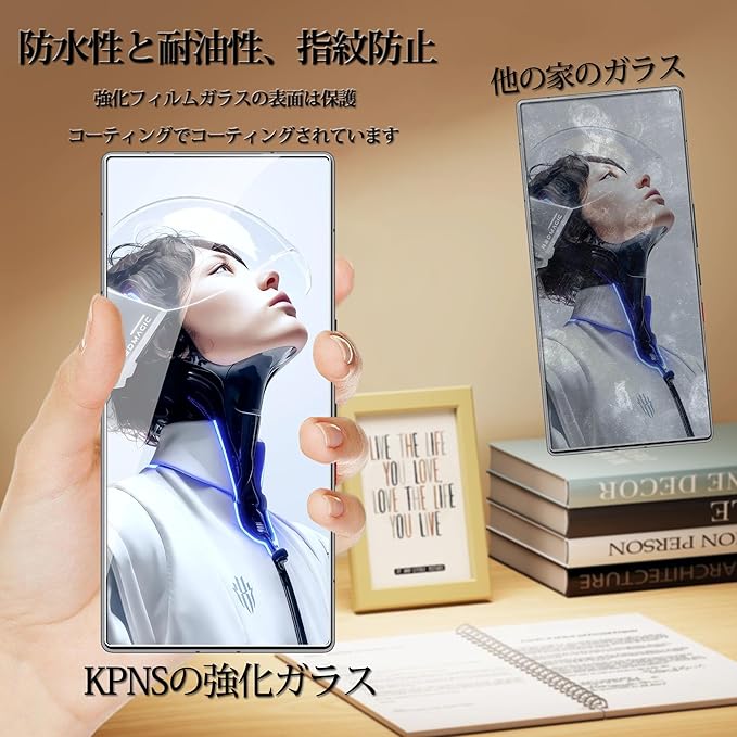 【指紋防止】ガラスフィルムに高耐久撥油コーティングが施され、汚れや油分をはじき、指紋がつきにくく、フィルムに汚れ、水滴、ほこりがある場合は、簡単に拭き取ることができます。
