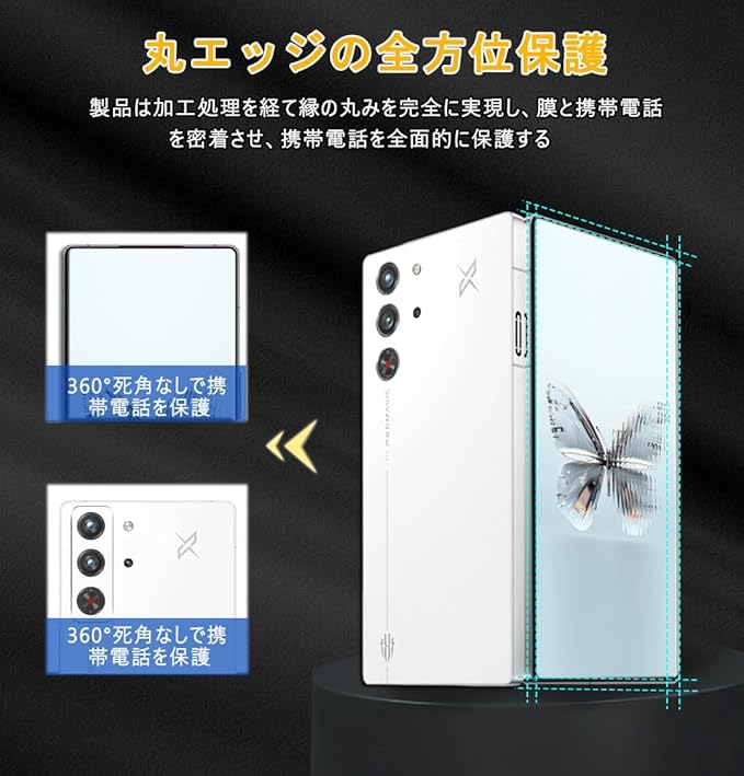 【対応機種】REDMAGIC 10 Pro 用の設計フィルム 【セット内容】2 カメラフィルム2 画面保護フィルム。(ご不安な場合は、お気軽にお問い合わせ下さいませ)【注意】多くの顧客はカバーと併せて使う習慣があることを考慮に入れて、このガラスフィルムを開発した時、本体の画面より3mmほど小さくになります。いろんなタイプのスマホケースと干渉ないです。