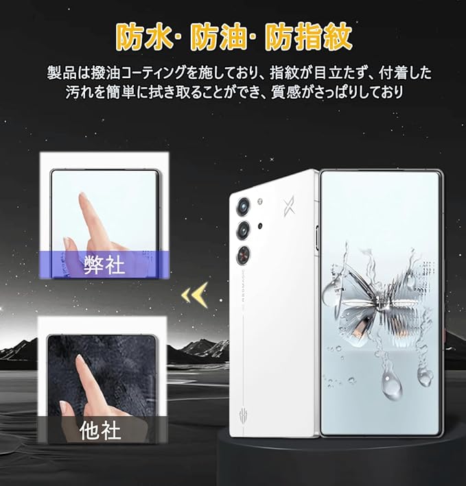 【指紋防止・高感度】レッドマジック10pro 用の フィルム 表面に指紋防止コーティング加工が施されており、画面がすっきりして指紋が付きにくく、高感度で操作が快適。万一汚れがついたら、布で拭けばきれいになります。