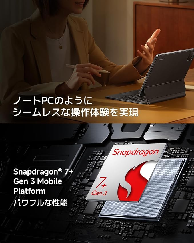 【ノートPCのような操作性】ビジネスで資料作成、動画&画像編集、クリエイティビティの作業も、早い処理速度で制作物を出力します。3200万画素の AON(Always ON)フロントカメラと5000万画素アウトカメラは、オンラインミーティングや資料の記録撮影に活躍します。Xiaomi Pad 7シリーズはワークステーションモードも搭載しており、タブレットをノートPCのようなインターフェースに変え、フローティングウィンドウ、調整可能なアプリサイズ、高い作業で情報収集することができます。これらの機能を組み合わせることで、Xiaomi Pad 7シリーズは生産性と創造性のための強力なツールとなります。