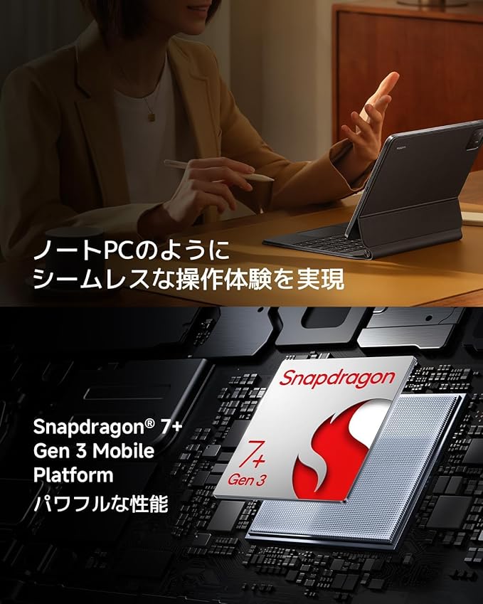 【11.2インチ 3.2Kの高精細ディスプレイ】Xiaomi Pad 7は3.2K解像度(3200 2136)に進化し、文書や資料などの操作しやすい3:2の画面比率、800nitsの最大輝度やDolby Vision、Adaptive HDR対応などの基本性能に、DCI-P3の色域にも対応します。トップクラスの鮮明さと、入念に調整されたオリジナル・カラー・プロによって、複数のデバイスでもプロフェッショナルなカラーパフォーマンスを実現します。最大144Hzの可変リフレッシュレートにより、ウェブ閲覧も、絵を描くときも、エンターテインメントを楽しむときも、なめらかかつ残像の少ないディスプレイ表示で目に優しい体験を得られます。さらに、4,096レベルの輝度調整とDC調光機能で、プロ仕様のアイ・プロテクション性能では夜間での使用にも目のケアにサポートします。