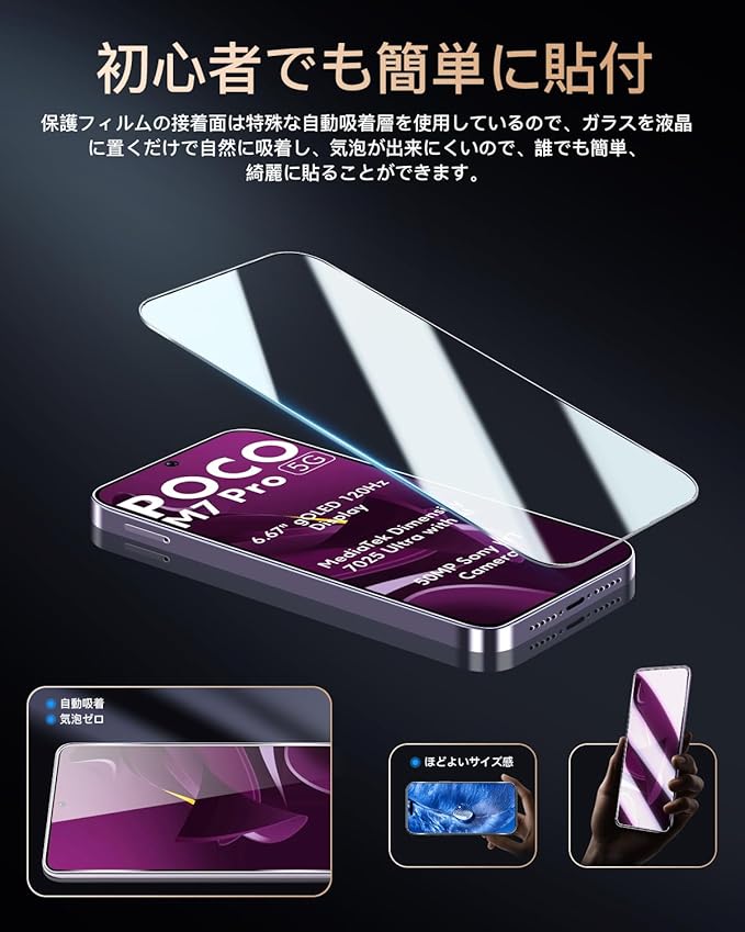 【対応機種】 対応 Xiaomi Poco M7 Pro 5G 専用に設計されています。素材に日本製の旭硝子を採用。【年間30万販売パフォーマンス】:FAMROLLSの保護フィルムは30万枚の販売パフォーマンスに達成しました。【HOT正規品】:実店舗を持つFAMROLLS限定商品の保護フィルムは市販上の安価品、不良品とは異なり、高価なフィルムと変わらない高品質な保護フィルムを作り出すHOTです。