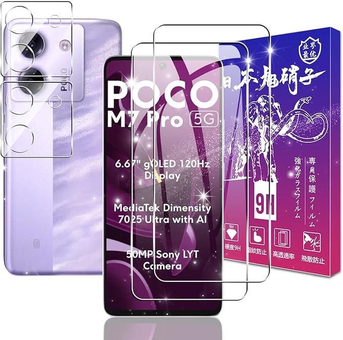 【2+2枚セット】対応 Xiaomi Poco M7 Pro 5G ガラスフィルム +レンズフィルム【日本製素材旭硝子製】表面硬度9H 対応 シャオミ POCO M7 Pro 5G 強化ガラス フィルム PocoM7Pro 5G 用 保護フィルム ケース カバー 高透過率 飛散防止 高感度タッチ 気泡防止 耐指紋 撥油性 ラウンドエッジ加工 簡単貼り付け FAMROLLS正規品