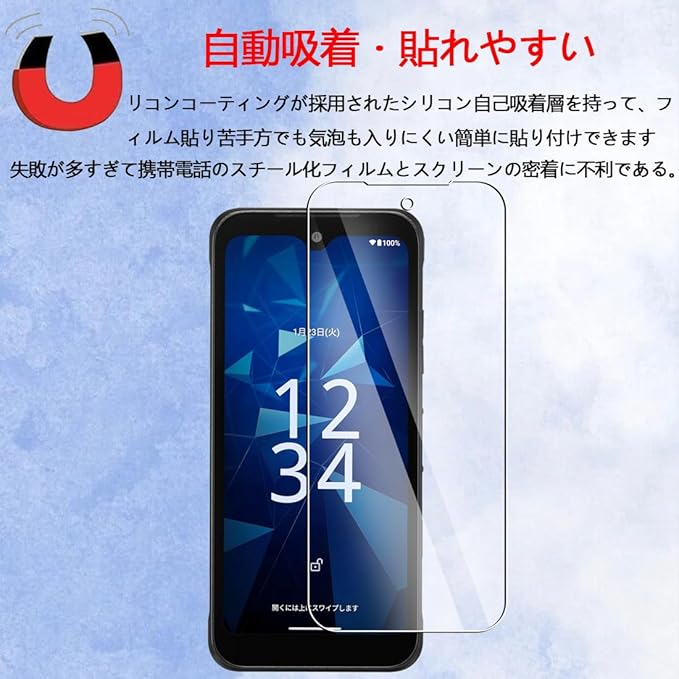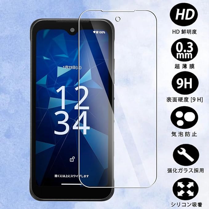 【硬度9H】高品質な日本製の旭硝子製、表面硬度9Hの強化ガラスは、スクリーンを守ることができます。鍵や刃物などの鋭い物体は損傷や割れから守ることができます。防水コーティング加工のため、ほこりや指紋などが汚れにくいです。付着しても簡単に拭くことができます。画面を美しく保ち、スムーズに操作できます。、,指紋防止加工。ハードコーティング加工により外部からの衝撃をフィルムが吸収し、画面へのダメージを最低限まで抑えました。ガラスフィルムは飛散防止加工されておりますので、万が一割れの場合でも、飛び散らず張り付いた安全の状態になります。安全性の高いガラスになっています。衝撃に強い、ガラスフィルムはガラスにこすられるリスクから体を守ります。