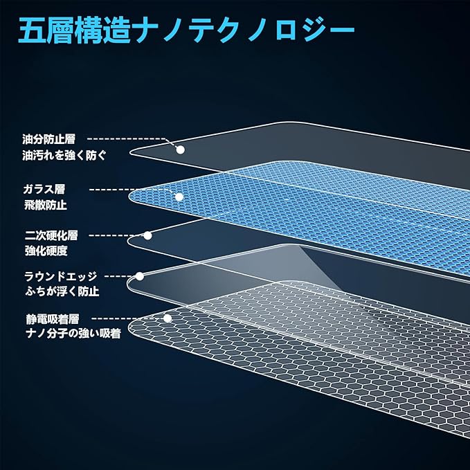 【ガラス素材】日本製素材旭硝子製、業界硬度レベル9H以上、高品質な素材で衝撃を緩和し画面の破損を最低限まで抑えます。