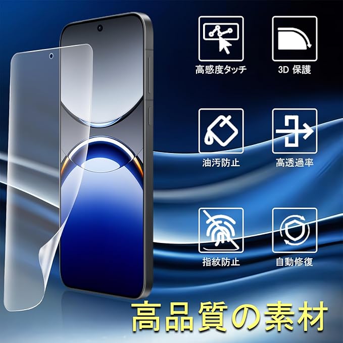 【柔軟なTPU素材】ご注意:保護フィルムは強化ガラスではなく、高品質のTPU素材、柔軟な材料で作られており、スクラッチ防止、傷つきにくい、携帯電話の画面の曲がったエッジを完全にカバーすることができ、傷に対して最大の保護を提供します。