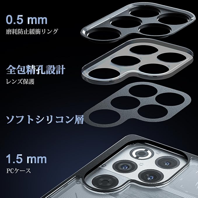 【レンズとスクリーン保護】ケースの厚さは本体より若干高く、redmagic 11 proが机などの平面の物の上に置いても傷がつかない。スマホが落下した際に液晶画面やレンズに傷が付かないようにする。