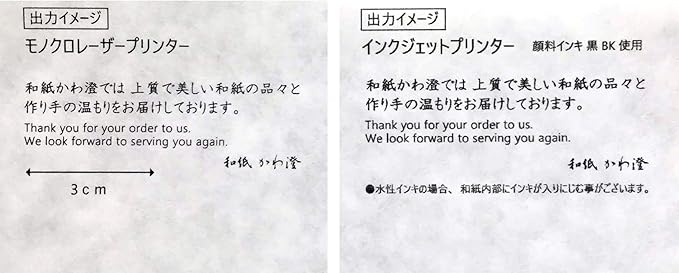 和紙の肌質をランダムに仕上げることで手触りはもちろんのこと、光を通した際には白い雲のような模様にも感じられます。実用的でもありますが美術的な要素もございます。リーフレット、御礼状、挨拶状、お品書きやPOP、便箋として幅広くお使い頂けます。手書きはもちろんインクジェットプリンター、レーザープリンター、コピーでも対応可能です。日本製