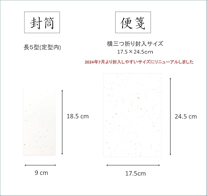【サイズ】封筒:長5型 9 18.5cm (定型内サイズ) 便箋:17.5 24.5cm(2024年9月よりサイズ変更しました。封筒に横三つ折り封入サイズ)