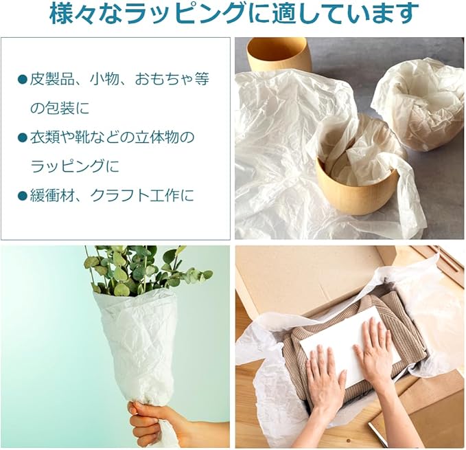 用途:アパレル・小物・ギフトなど商品保護のインナーラップ包装、緩衝剤、工作