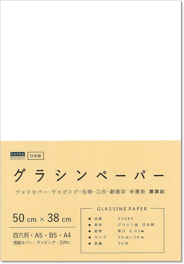 ペーパーエントランス グラシン紙 薄葉紙 50cm 38cm 50枚 包装紙 ラッピング 本 ブックカバー 工作 55080