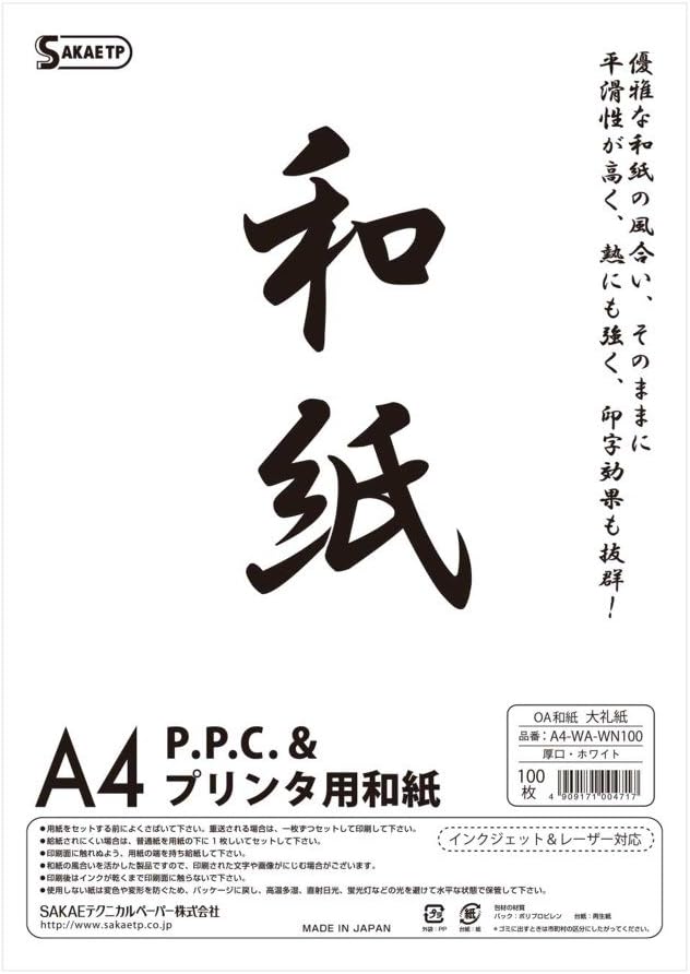 SAKAEテクニカルペーパー OA和紙 厚口80g/m2 大礼紙 A4 白 100枚 A4-WA-WN100