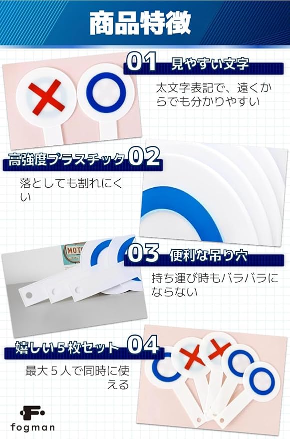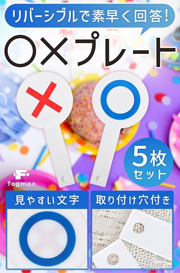 fogman まるばつ 〇 パーティーグッズ クイズ マルバツ 両面 札 ボード 5枚セット