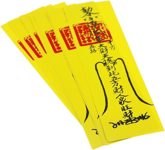 この中国のお化け、キョンシーを封印するお札は、演劇やコスプレなどで雰囲気を演出します。長方形の形状で、イエローの色をしています。サイズは約20 6.5cmで、紙で作られています。10枚セットで販売されています。