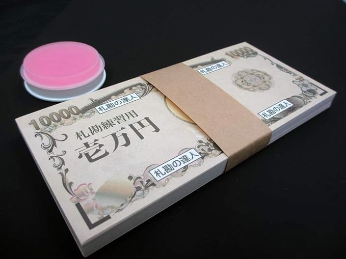 お金のプロ、銀行員が入社後最初に受ける研修「札勘(さつかん)」に必要な札勘練習用模擬紙幣セットです。