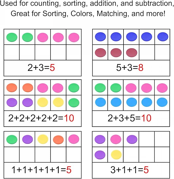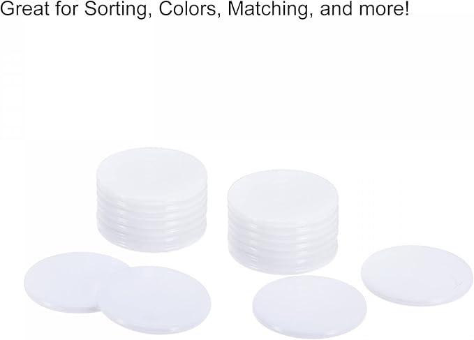 これらの小さな平らなディスクは、滑らかな表面を備えたプラスチック製で、使いやすく、教室に適したリソースです。小さな指に使いやすく、ゲーム、学習、並べ替えなどに最適です。