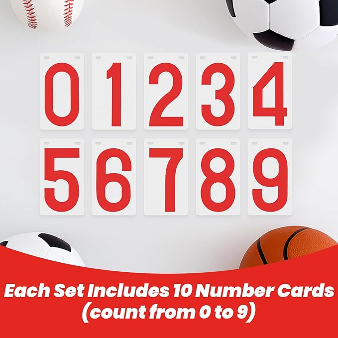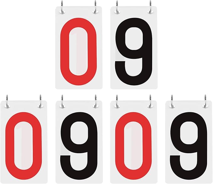 【片面仕様・柔軟な得点管理】:数字0〜9まで表示可能な片面得点カード。6セット入り(赤数字 白カード3セット、黒数字 白カード3セット)で、自由にスコアを組み合わせて使用できます。