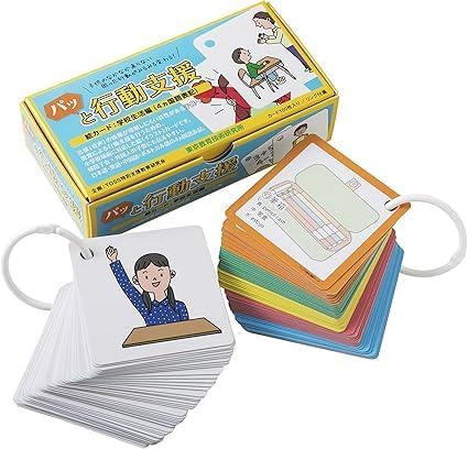 特別支援を要する子供の中には、音声による情報(指示)よりも絵や写真などの視覚情報による指示の方が理解・行動しやすいという特性がある子供がいます。 「パッと行動支援 絵カード」は、発達障害児や小さな子供とのコミュニケーションで活用されている絵カードに着目し、小学校の先生方の意見を取り入れて制作した教材です。 カード内容を学校生活で必要な「場所」「行動」「禁止」「教科・行事」「学校必需品」の5つのカテゴリーに分け、子供にわかりやすいシンプルなイラストで表現しました。言葉よりもイラストの指示のほうが行動や記憶がしやすい子供にお薦めします。