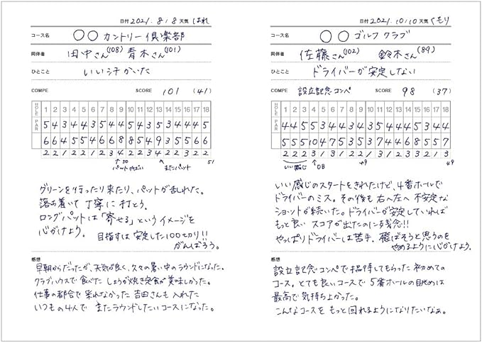 ラウンド後の記録や反省点を1冊に