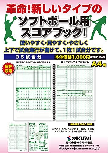 サクライ貿易 (SAKURAI) CALFLEX プロマーク (Promark) ソフトボール スコアブック (ソフトボール用スコアブック / A4 サイズ) 練習試合 試合 サクライ貿易 SC-200