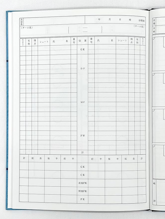 繰り返しの書込みに耐える丈夫な紙を使っています。 しっかりと厚みのある表紙が記入時のサポートになります。 記録しやすいレイアウトなど、こだわりの詰まったSO社製のスコアブックです。 B5サイズ、24試合分、記入法説明つき、ハードカバー 表紙サイズ・縦 横 25.8 18.6(cm)