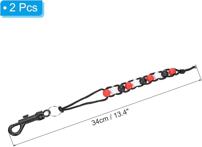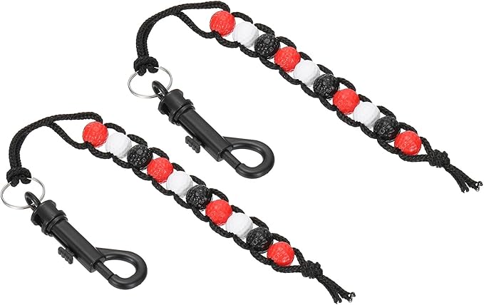 カラー:レッド、黒、ホワイト、材質: ナイロンロープ、プラスチックビーズ、サイズ:34 x 13 cm(L*W)、パッキングリスト:2個 x ゴルフストロークカウンタービーズ