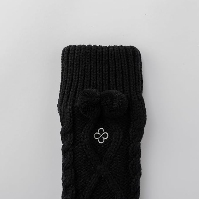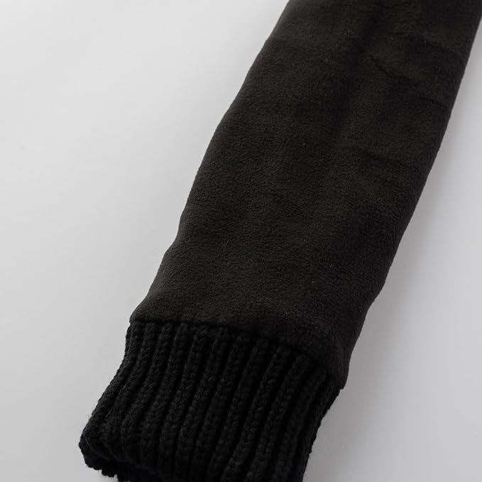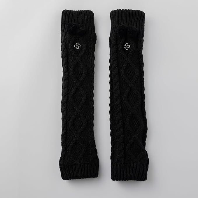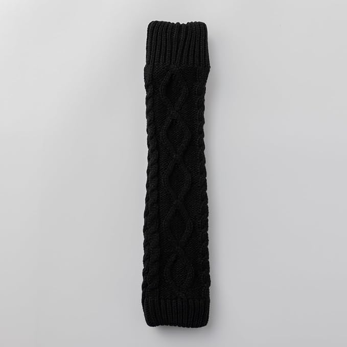 ベーシックデザインのケーブル編みレッグウォーマー。表ニット+裏フリース、防寒に役立つあったかレッグウォーマーです。