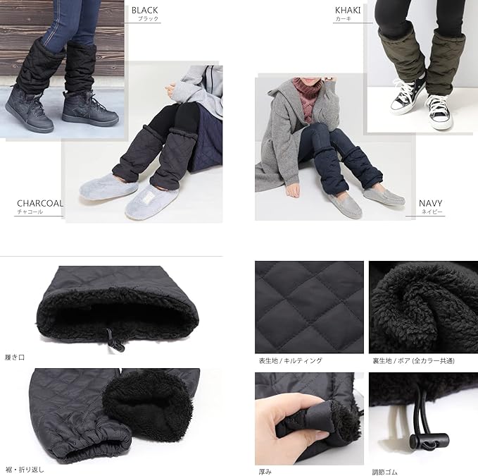 防寒&保温抜群の裏ボアキルティングレッグウォーマー。