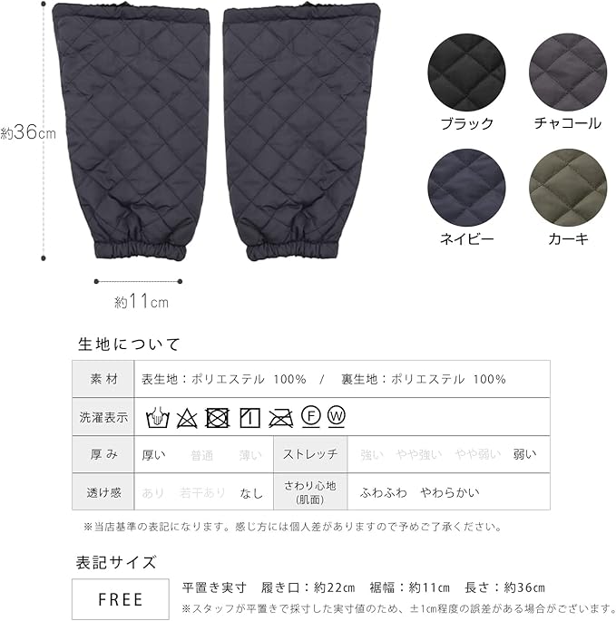 [イビザストア] レッグウォーマー 裏ボア ミディアム丈 裏起毛 防寒 冬用 キルティング
