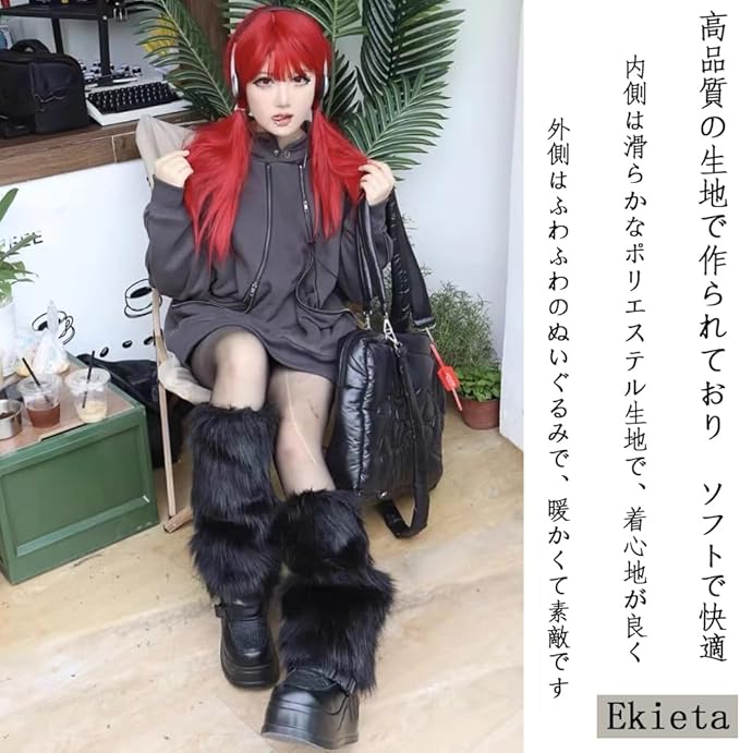[Ekieta] レッグウォーマー 足首ウォーマー ふわふわ 暖かい 防寒 靴下 ロング レディース フェイクファー 長靴 カフスカバー 女性 女の子 ルーズソックス 冷え対策 厚手 可愛い